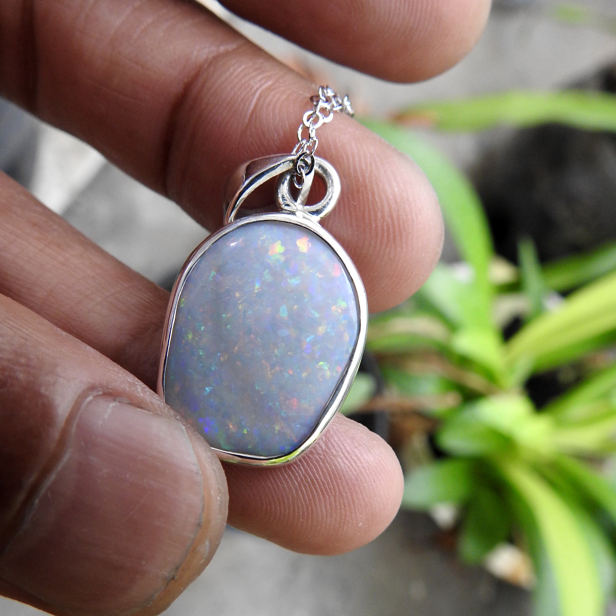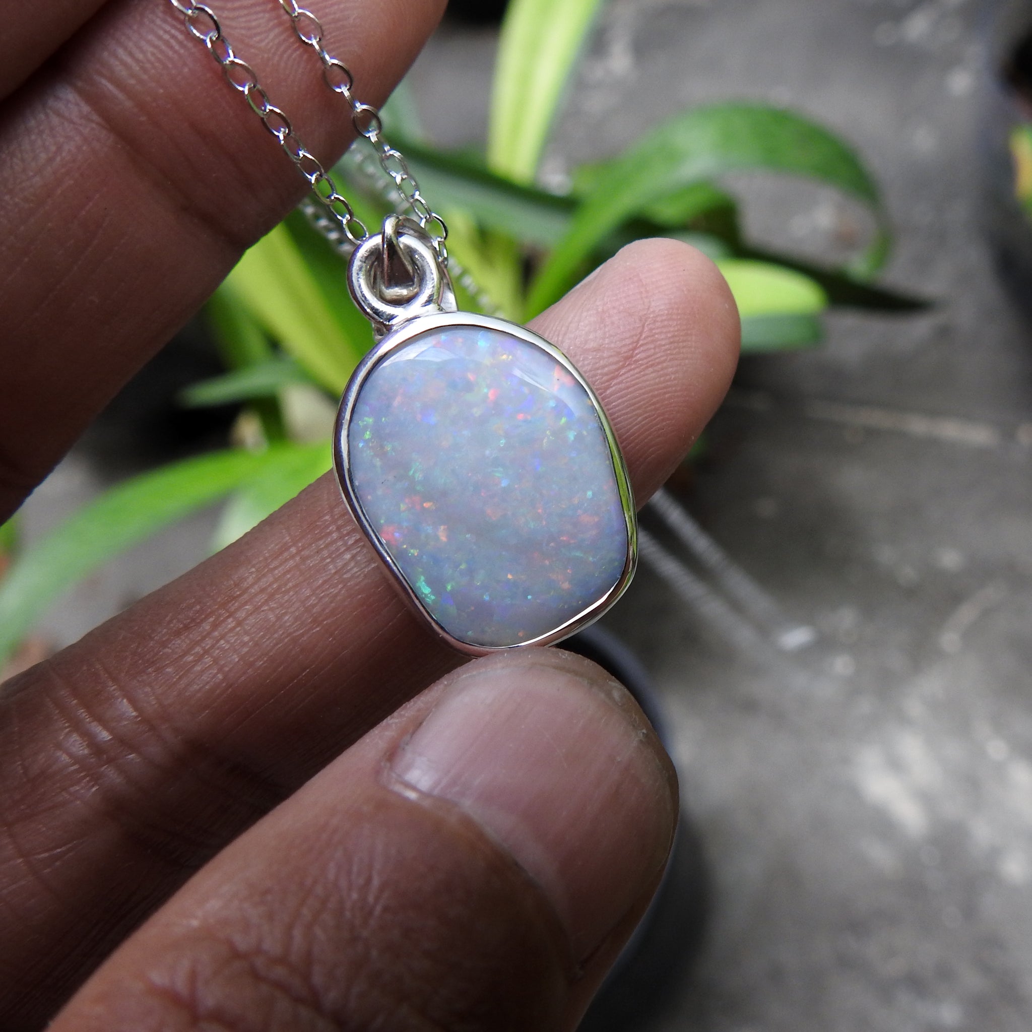 Australian Solid Opal Sterling Silver Pendant 18" chain
